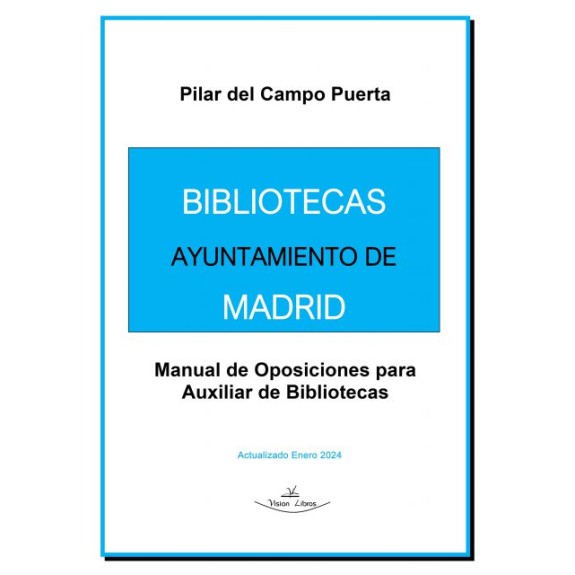 BIBLIOTECAS Ayuntamiento de MADRID es un Manual de oposiciones para Auxiliar de Bibliotecas. Todo el contenido está preparado para 2023.
