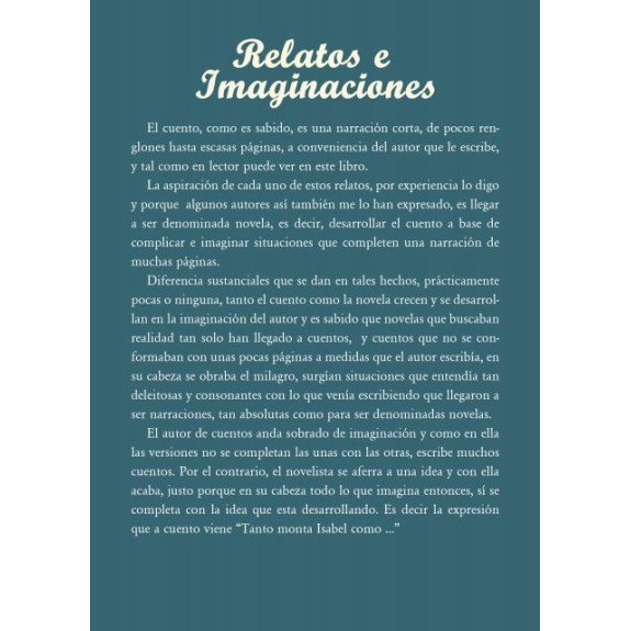 El cuento, como es sabido, es una narración corta, de pocos renglones hasta escasas páginas, a conveniencia del autor que le escribe, y tal como en lector puede ver en este libro.